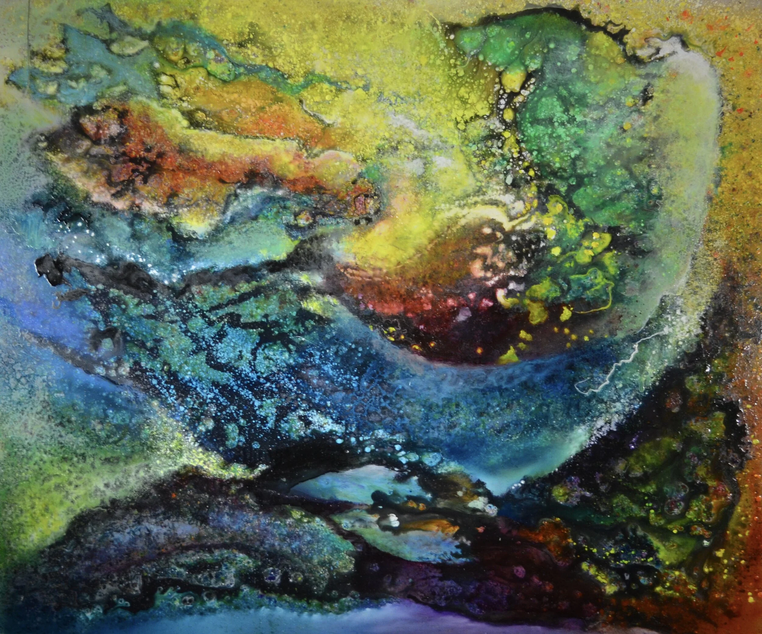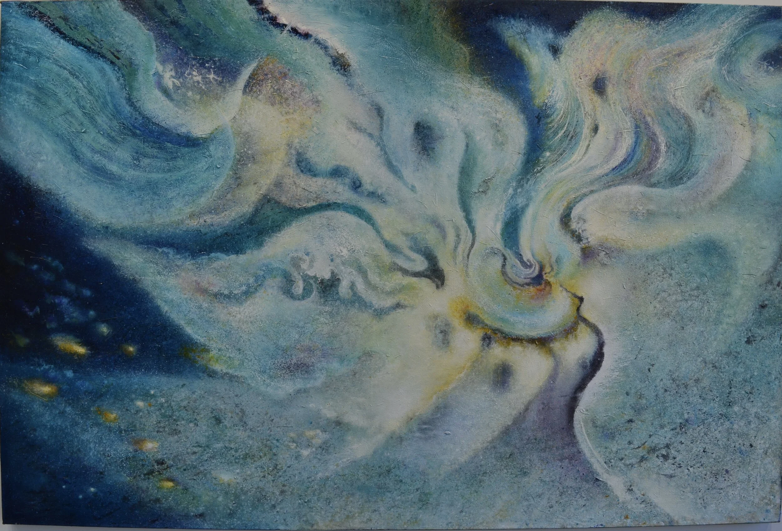 Soar, oil and star asters on canvas, 2017, 4'x5', private collection, MA